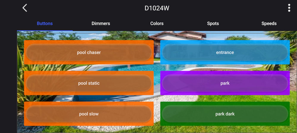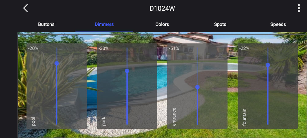 The DMX remote app works with Sweetlight standalone DMX interfaces. You can close the app at any time – the lightshow continues inside the interface. Simply reopen the app whenever you want to adjust scenes, dimmers, colors, speeds, or spots.