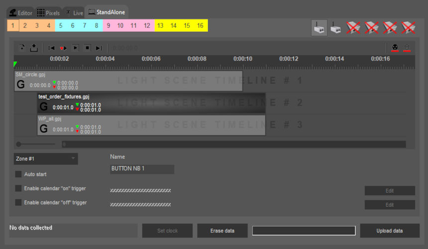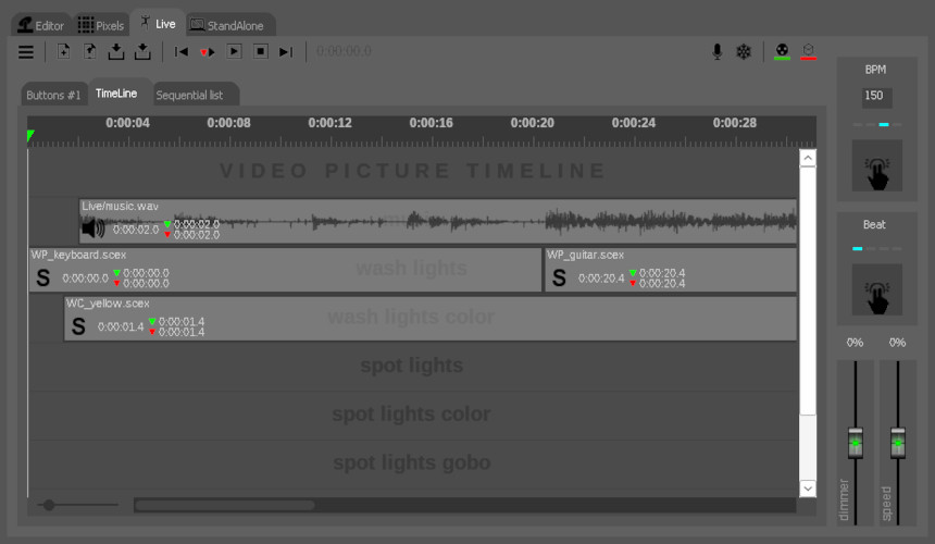 Synchronize lighting to music or video using the timeline for precise cue alignment.
