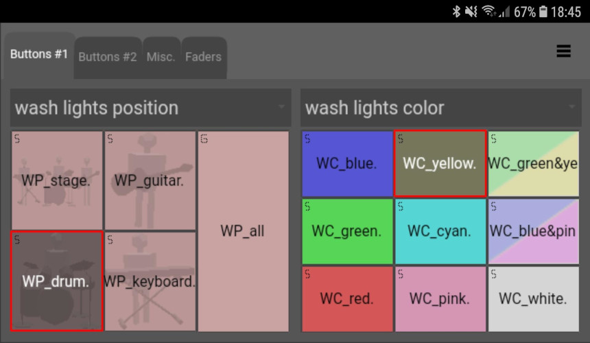 Declare buttons in the DMX interface and upload scenes into those buttons.
